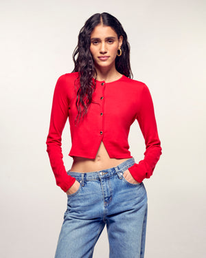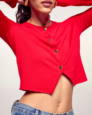 Heart Button Cardigan - 100% Merino Wool - RWS Certified - Hot Red