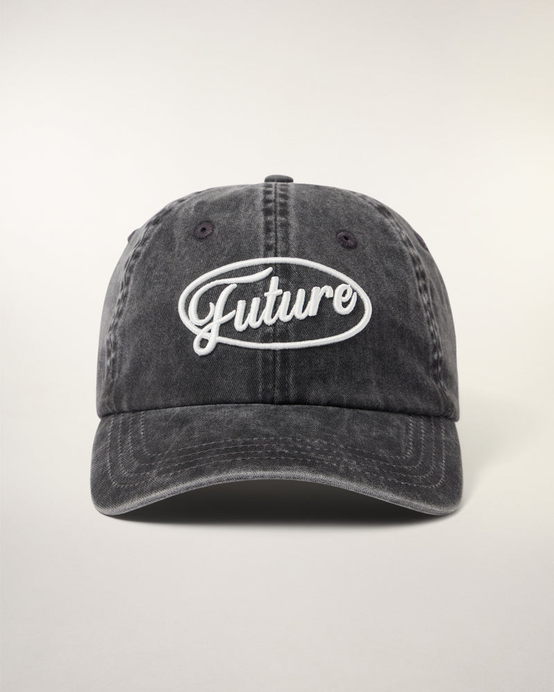L’accessoire indispensable pour parfaire votre vestiaire de saison. Confectionnée en 100% Coton, cette casquette se distingue par sa visière courbée classique et une broderie en relief affichant le texte signature "Future" au centre d'un ovale sur le devant.