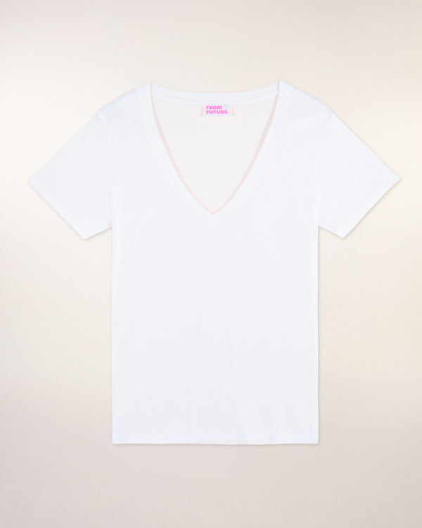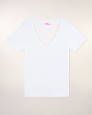 Short Sleeve V-Neck T-shirt - Cotton - White