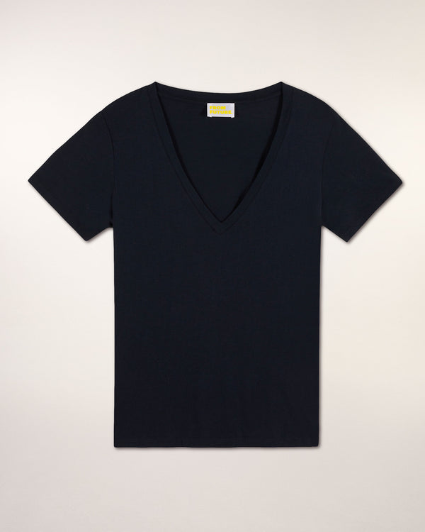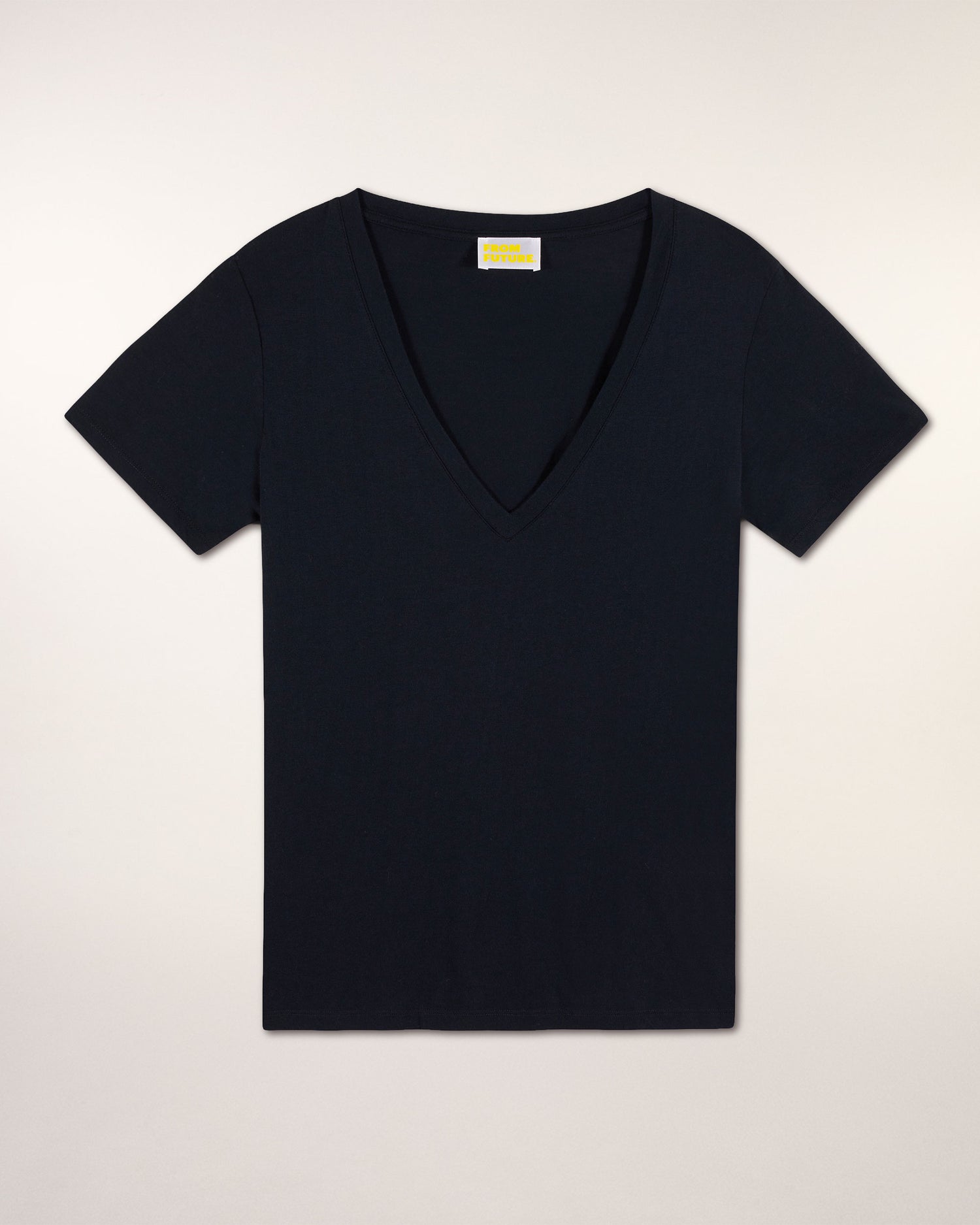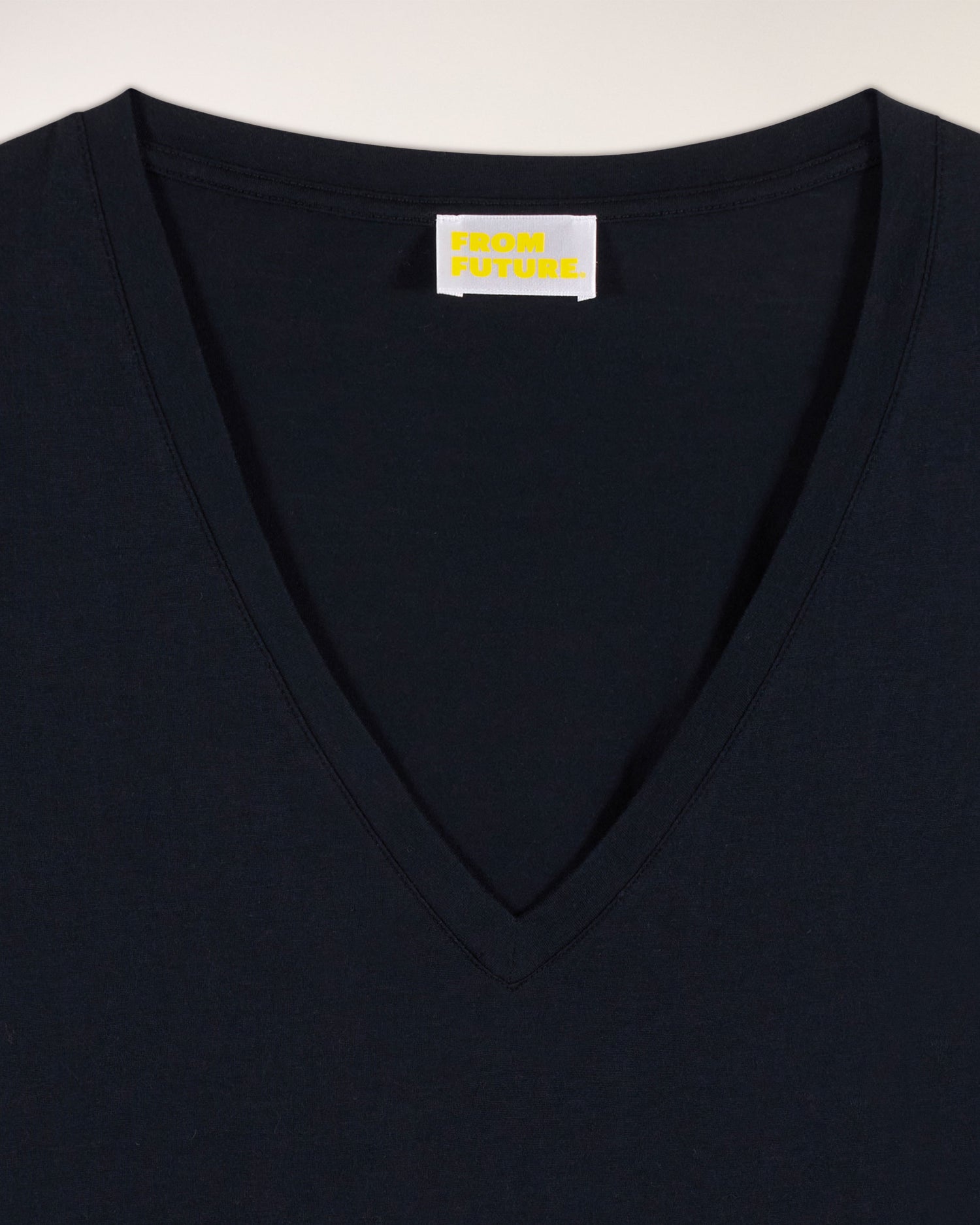 Short Sleeve V-Neck T-shirt - Cotton - Black