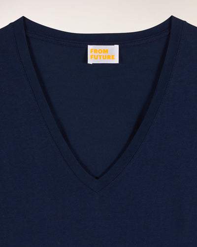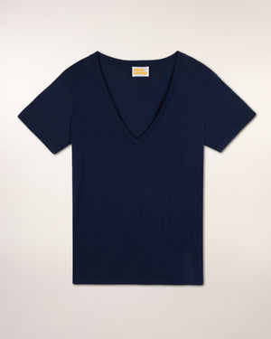 Short Sleeve V-Neck T-shirt - Cotton - Navy