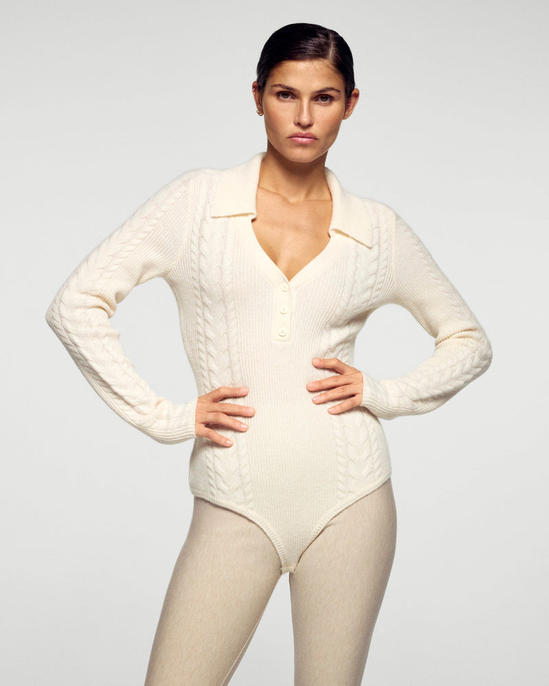 Long-Sleeved Cable Knit Bodysuit