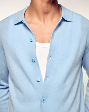 An essential piece of the men’s wardrobe that combines the refinement of a shirt with the incomparable softness of cashmere. This long sleeve style stands out with its classic shirt collar and delicate knit, offering a look that is both relaxed and sophisticated, ideal for everyday elegance.