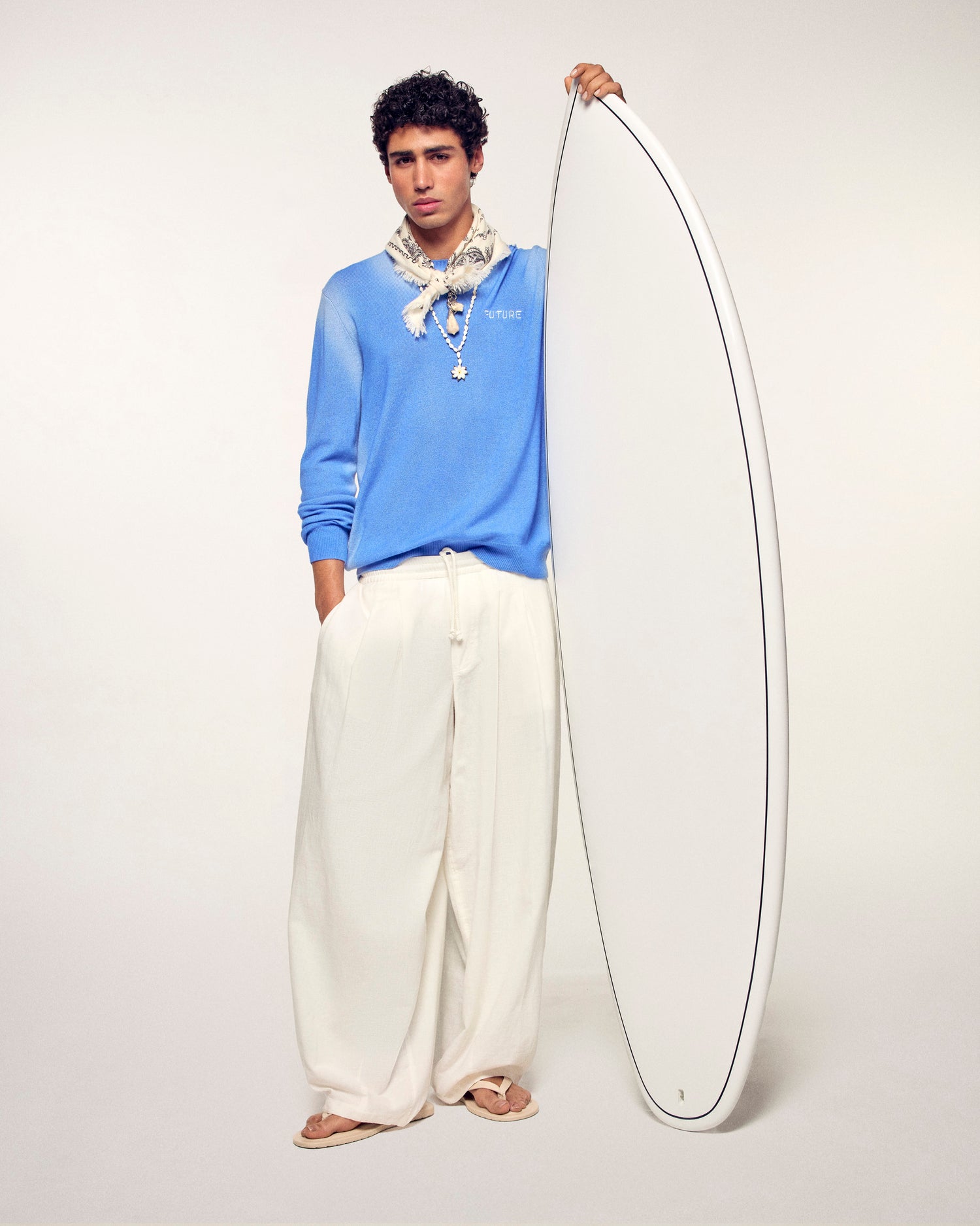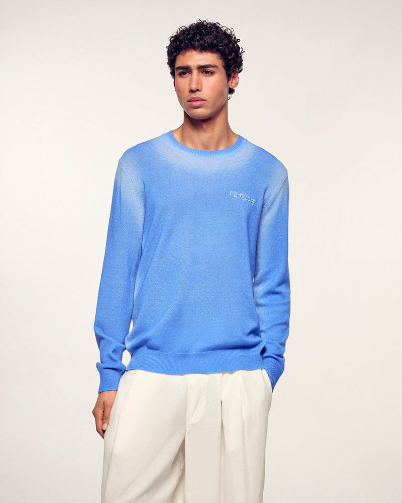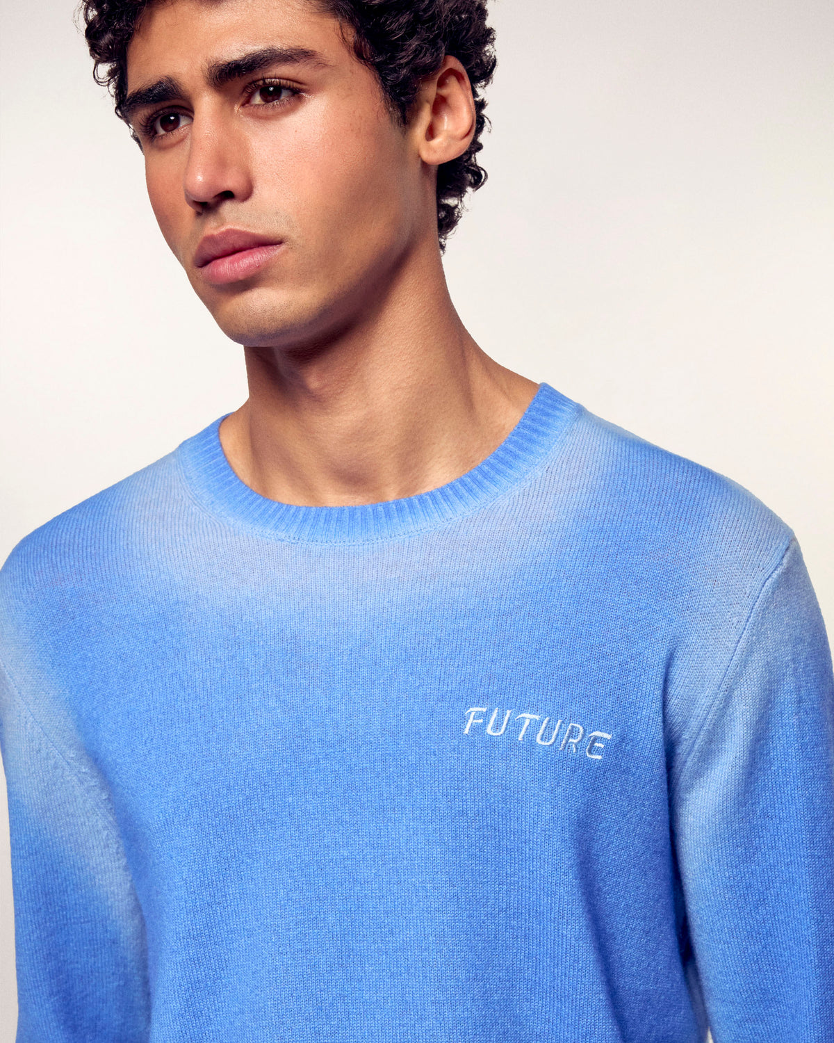 A bold sweater that plays with textures and shades thanks to its unique washed effect. Enhanced with the “FUTURE” print, it adds a contemporary and graphic touch to seasonal outfits.