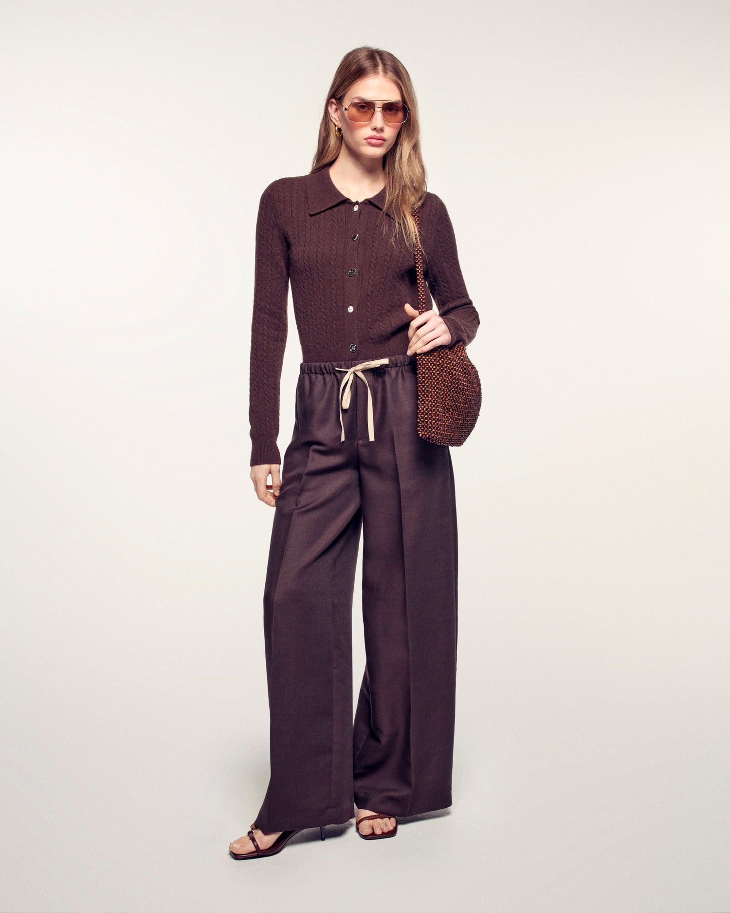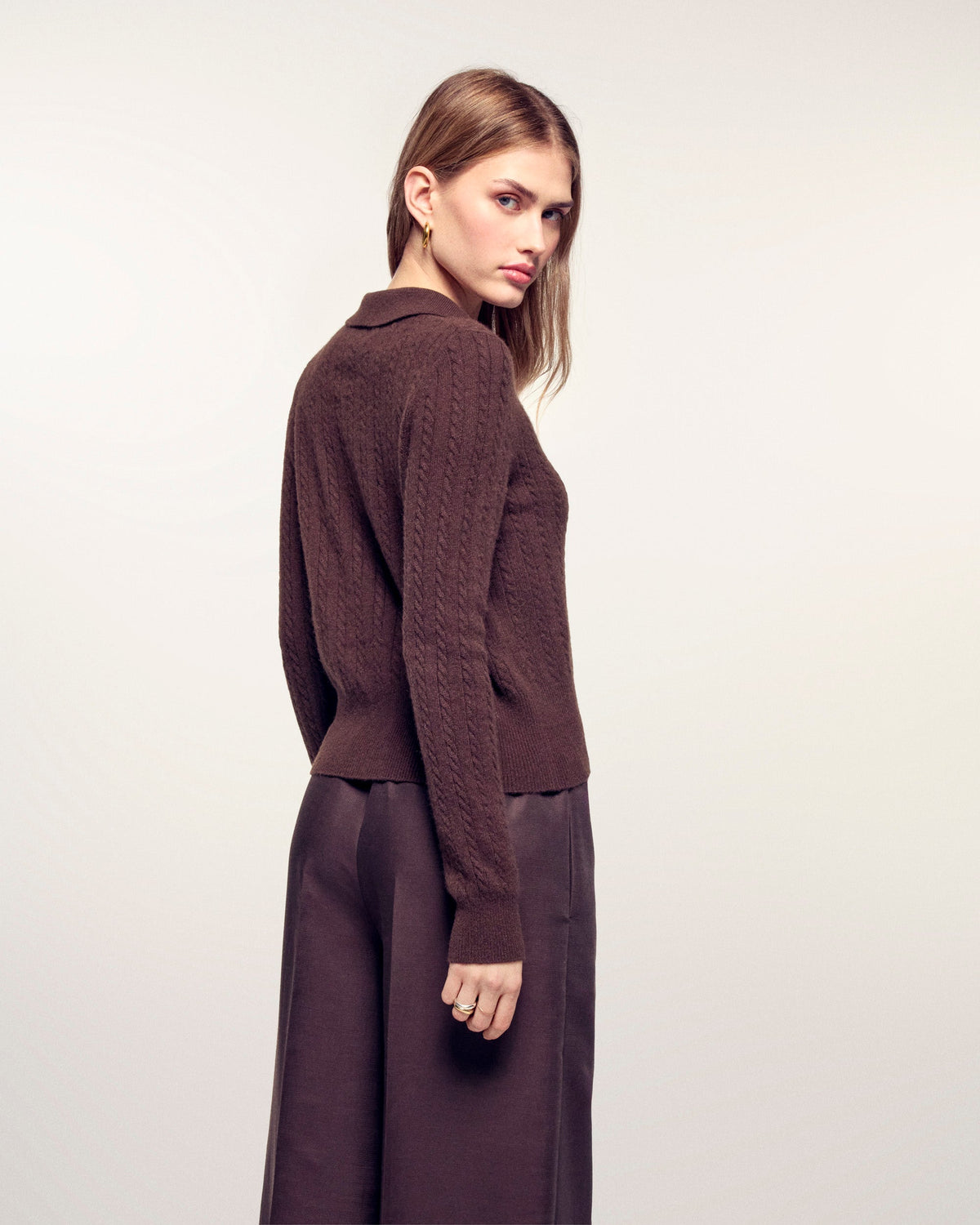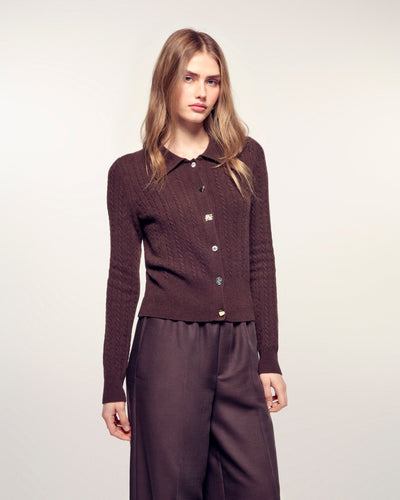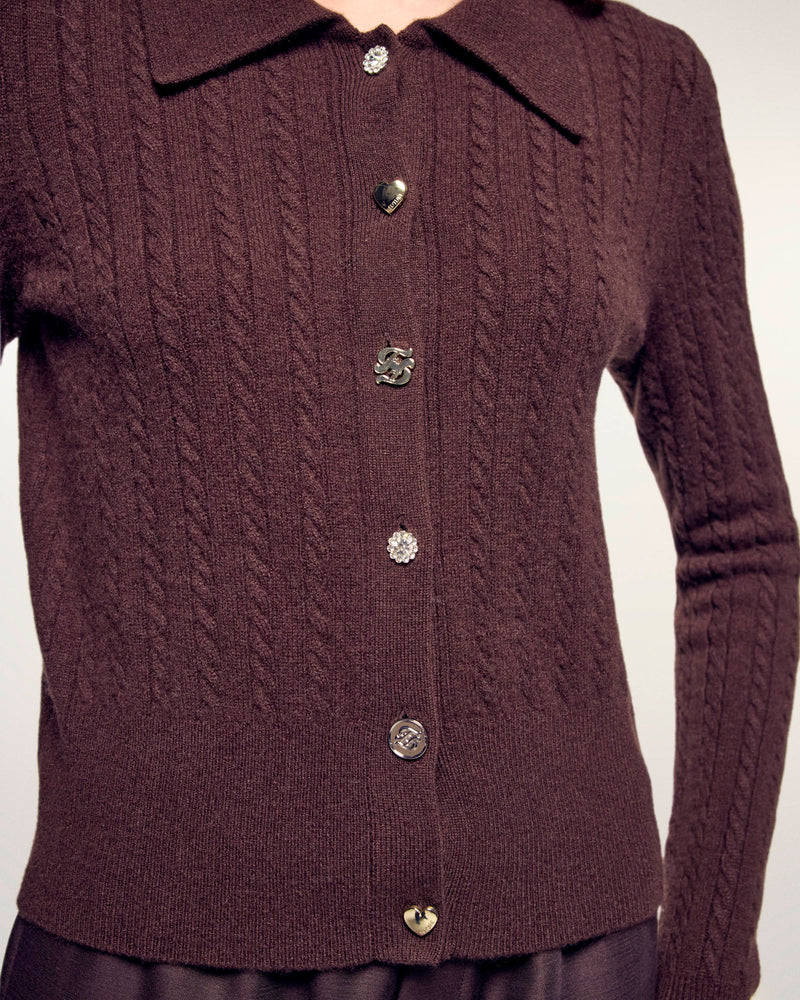 The cardigan that brings a chic vintage touch. Crafted from 2-ply Cashmere, this cardigan offers a soft and light knit. Its short and slim cut is structured by fine cable knits and enhanced by original novelty buttons.