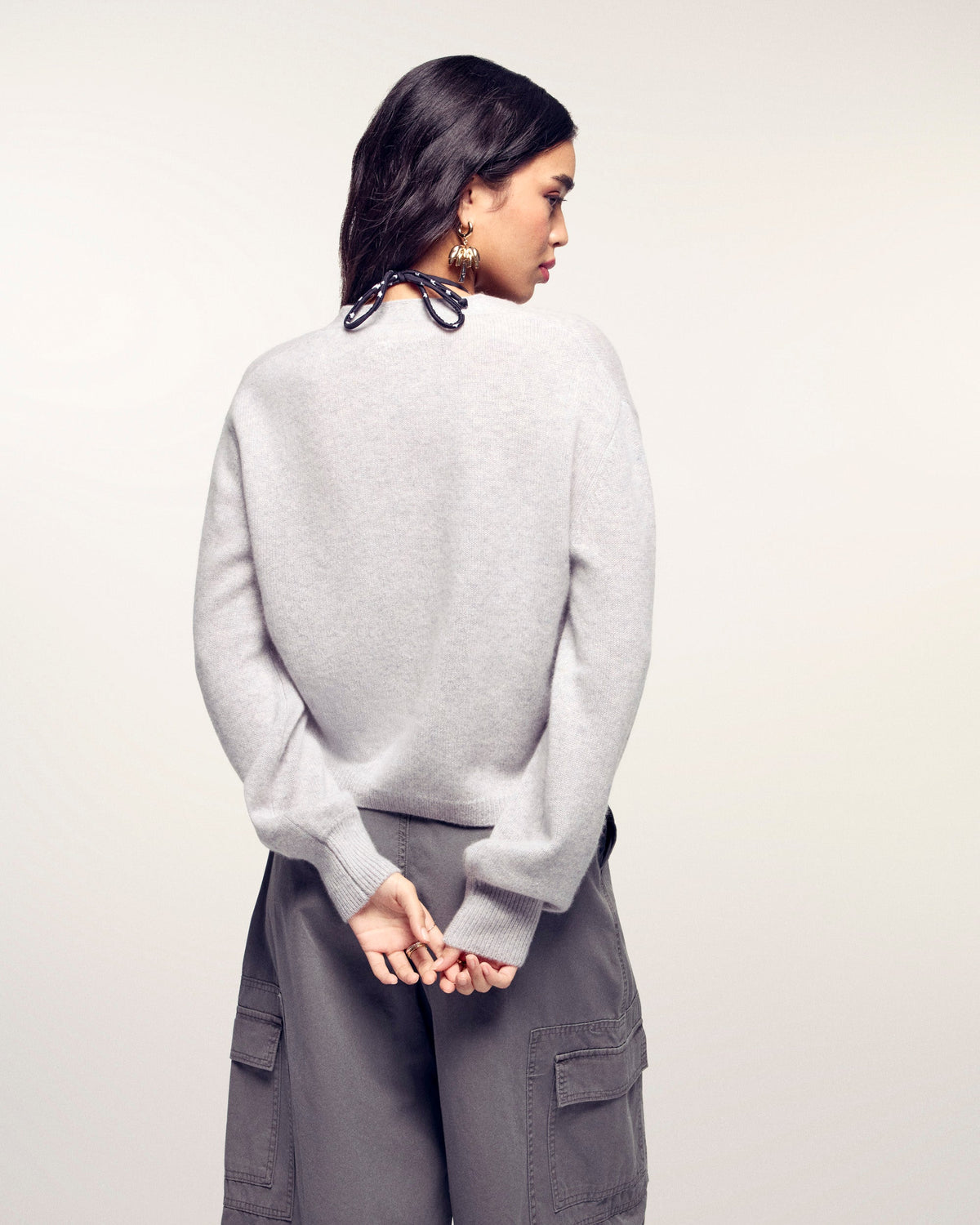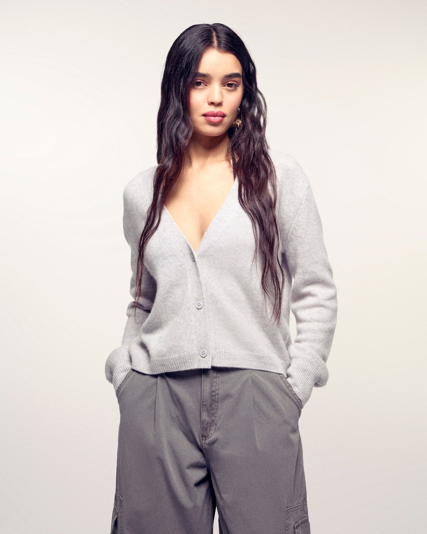 A wardrobe essential, this short cashmere cardigan sweater combines softness and modernity. Its 4-ply knit provides ideal warmth while remaining light. Featuring an elegant V-neck and an oversize fit, it brings a relaxed and refined look to all your outfits.