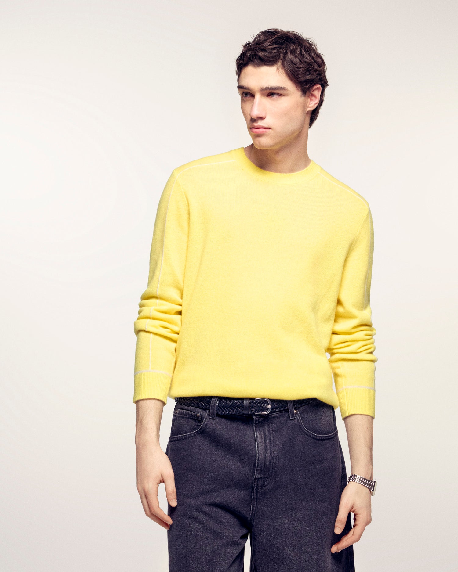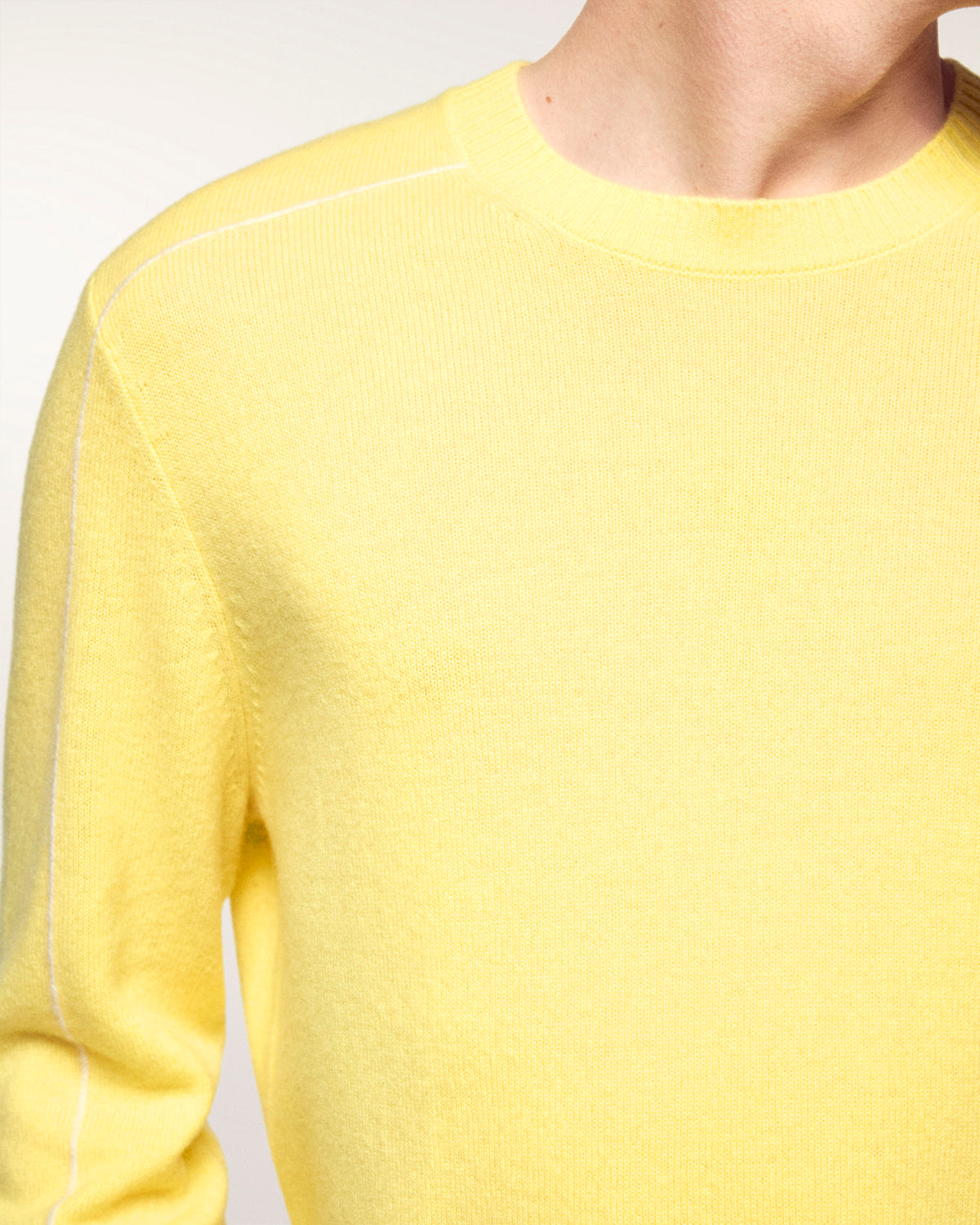 Crafted from 2-ply Cashmere, this sweater ensures premium comfort. Its timeless regular fit is twisted by a contrasting trim on the sleeves and sides, for a sporty and graphic look.