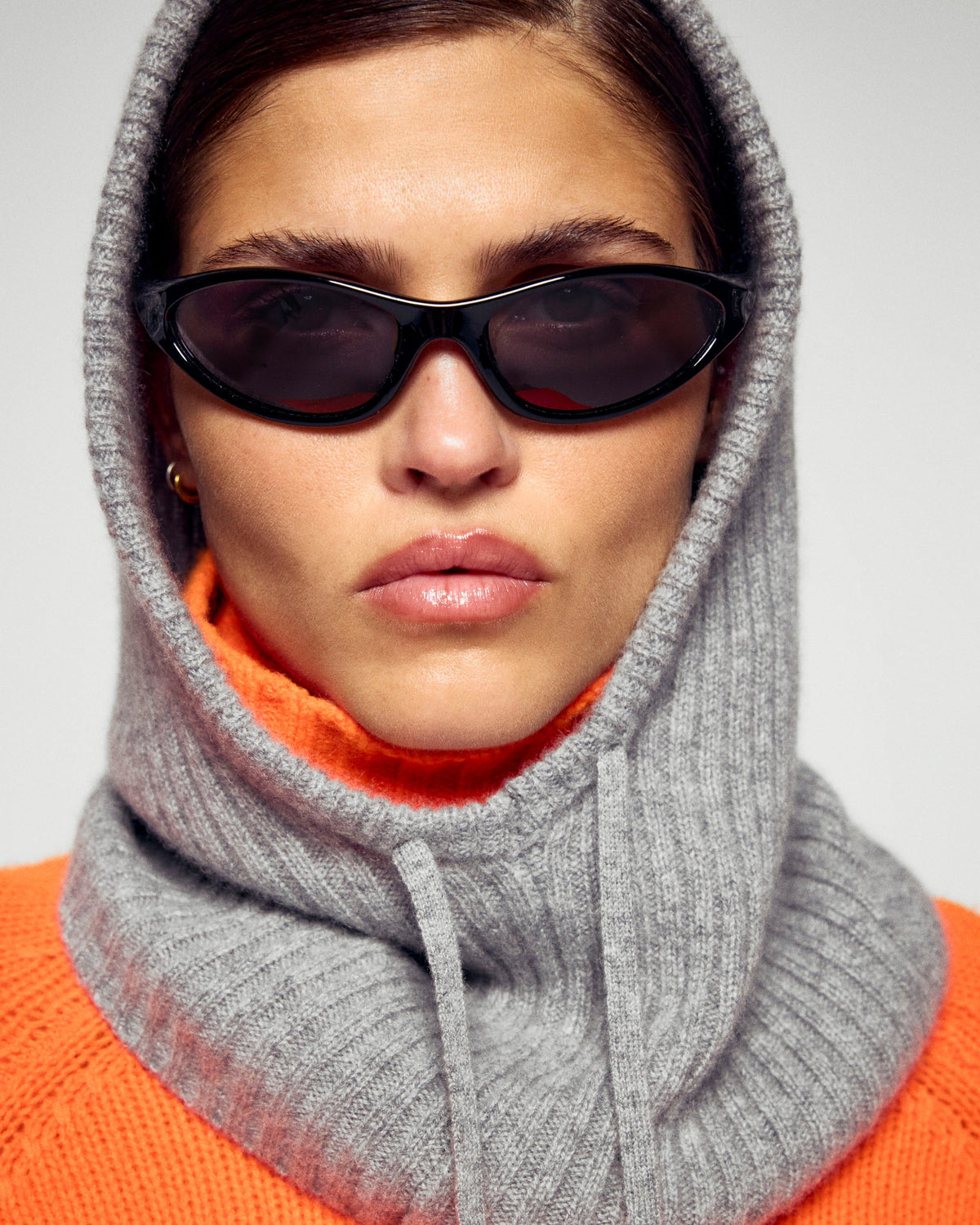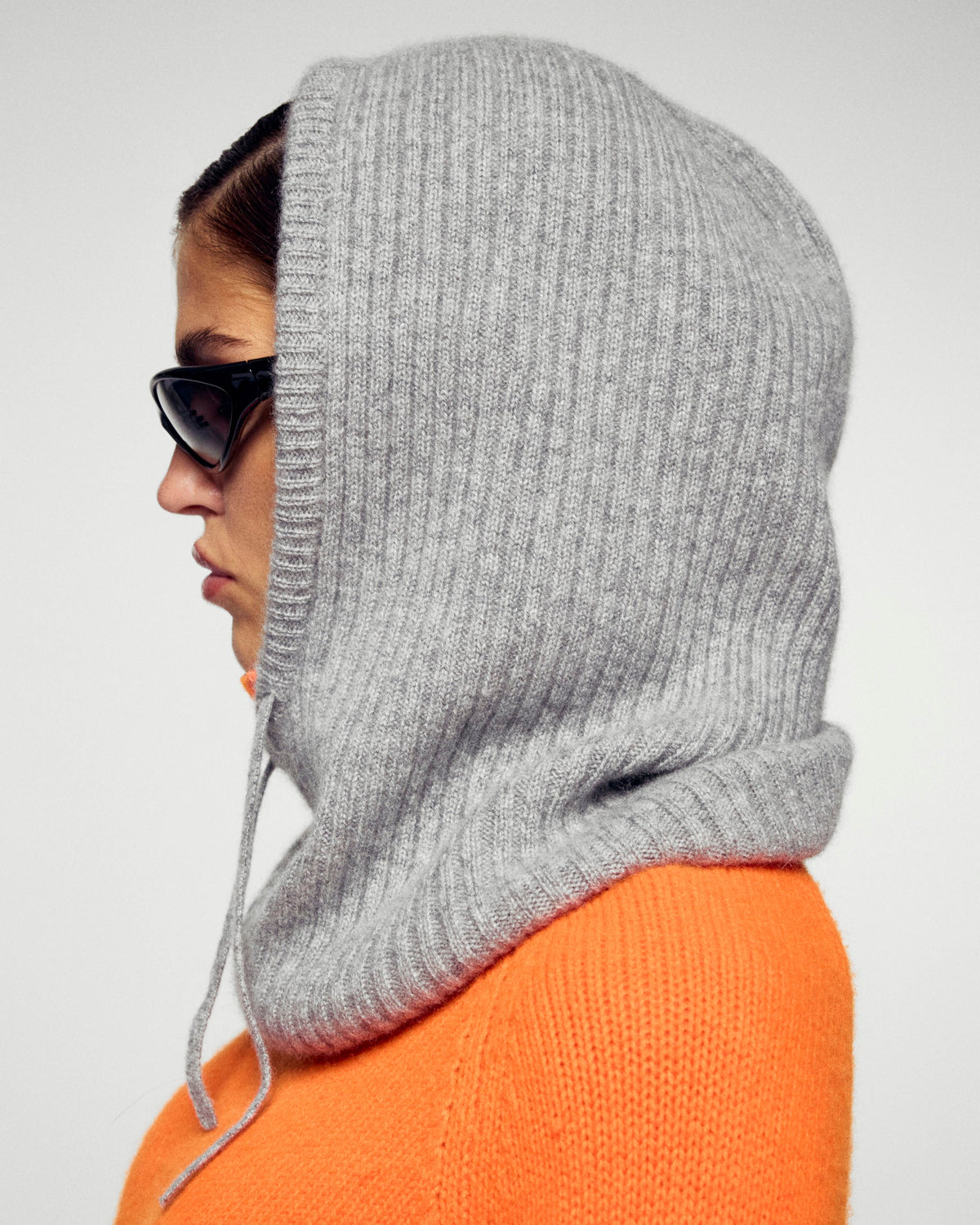 Stay warm and chic with this cozy cashmere hood. The ribbed knit and adjustable drawstrings make it a versatile piece for any winter outfit.