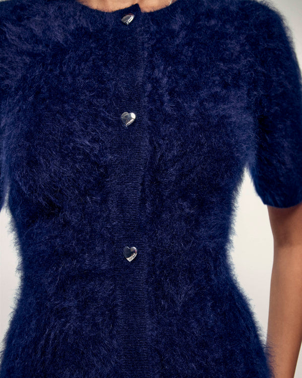 Brushed Cashmere Dress with Silver Heart Buttons - 100% Cashmere - GCS Verified - Navy
