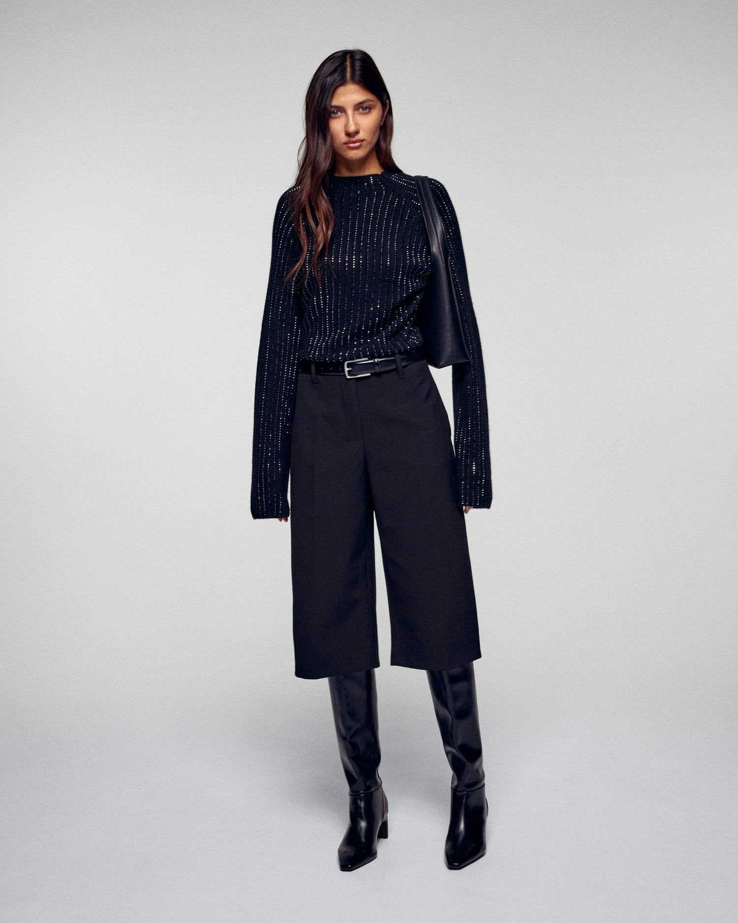 - Women's GCS® 4-ply certified ribbed cashmere sweater with rhinestones - Crew neck - Long sleeves - Regular fit - The Good Cashmere Standard® (GCS) is an independent standard for sustainable cashmere, that aims to improve the welfare of cashmere goats, the working conditions of farmers and to protect the environment.