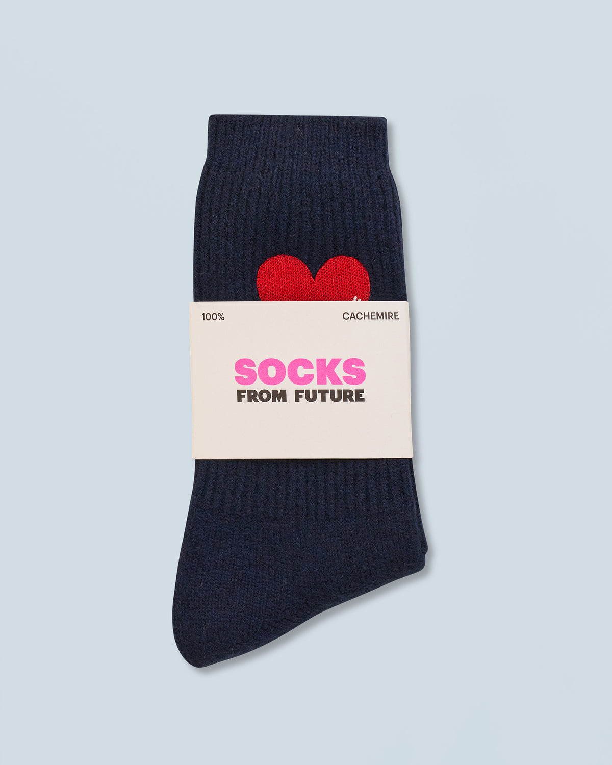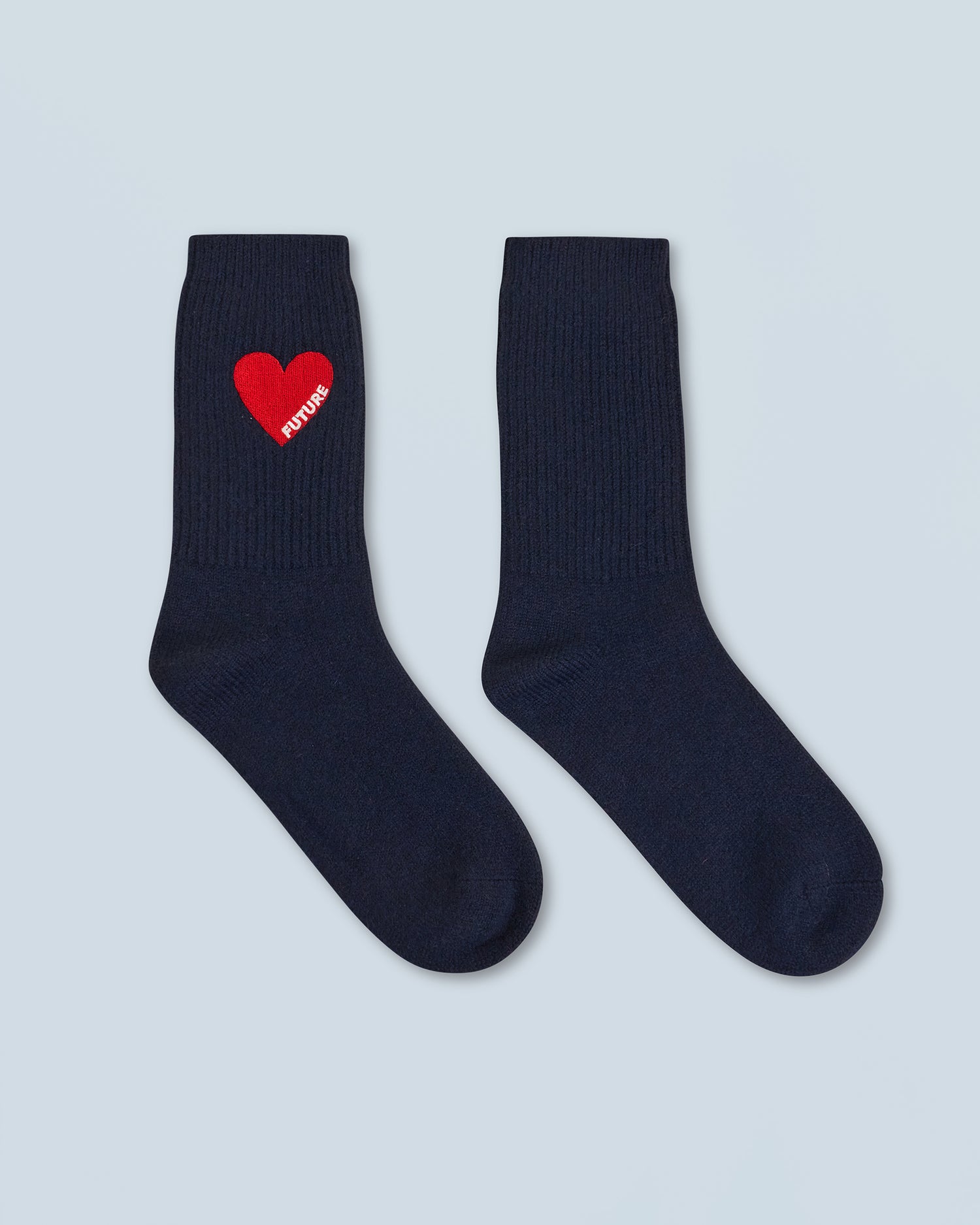 Elevate your seasonal look with these mid-high socks crafted from cashmere. Ribbed and tightened at the ankles, they reveal an embroidered "Future" heart, inviting you to join the Club!