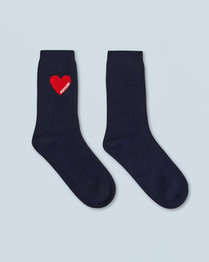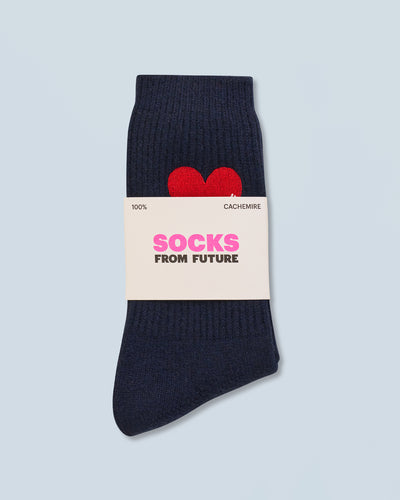 Mid-Calf Heart Socks - 100% Cashmere - GCS Certified - Navy