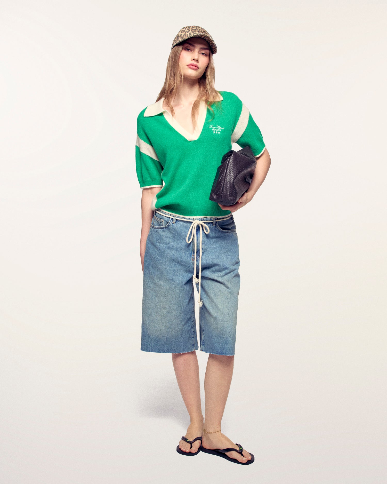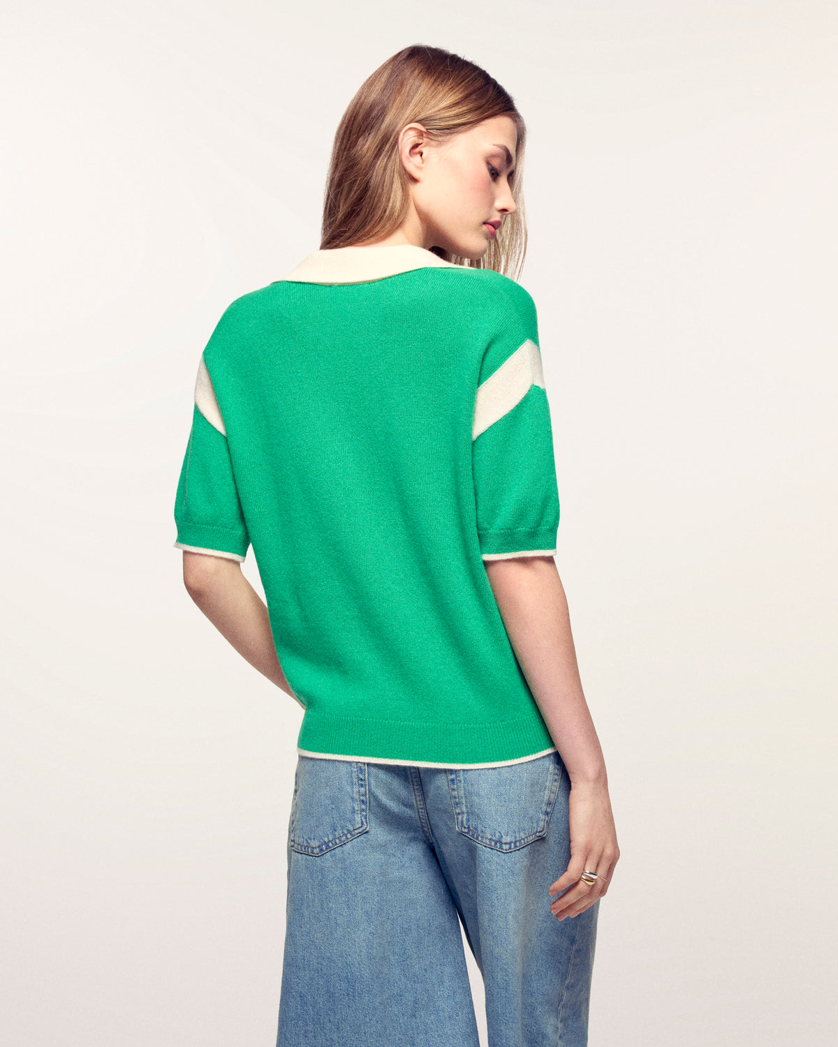 - Contrasting V-neck polo collar