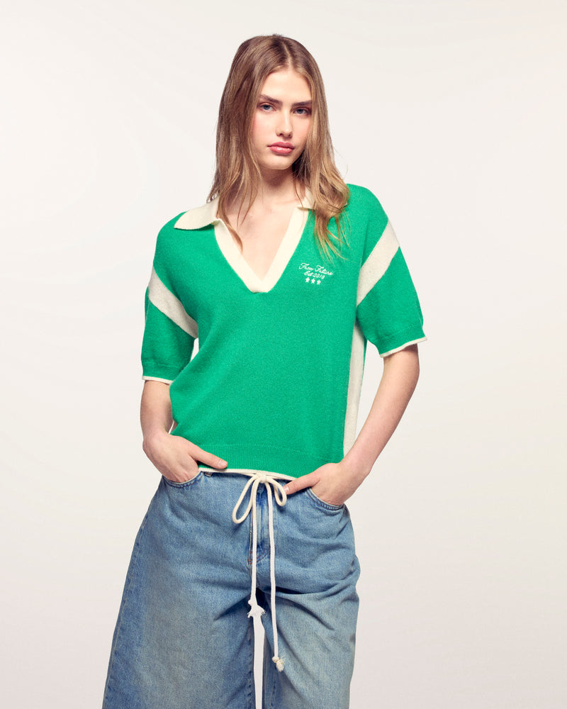 - Short sleeve polo sweater for woman