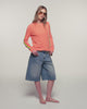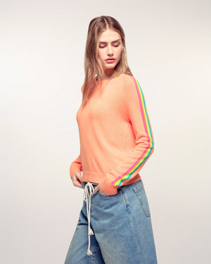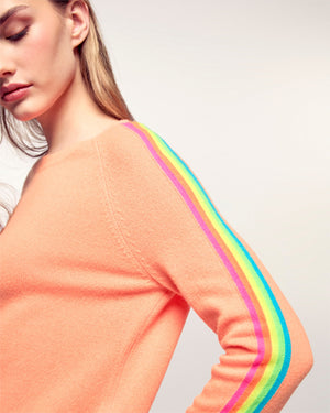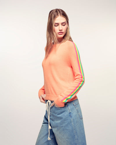 Multicolored Stripe Sleeve Crewneck Sweater - 100% Cashmere - GCS Verified - Star Orange