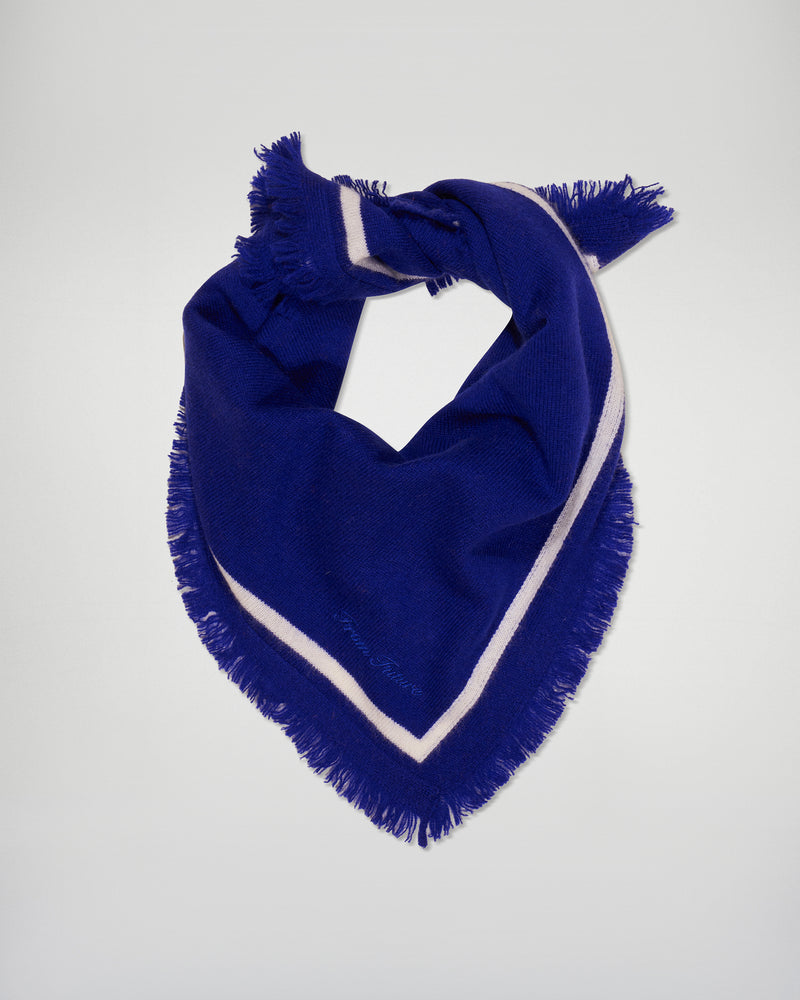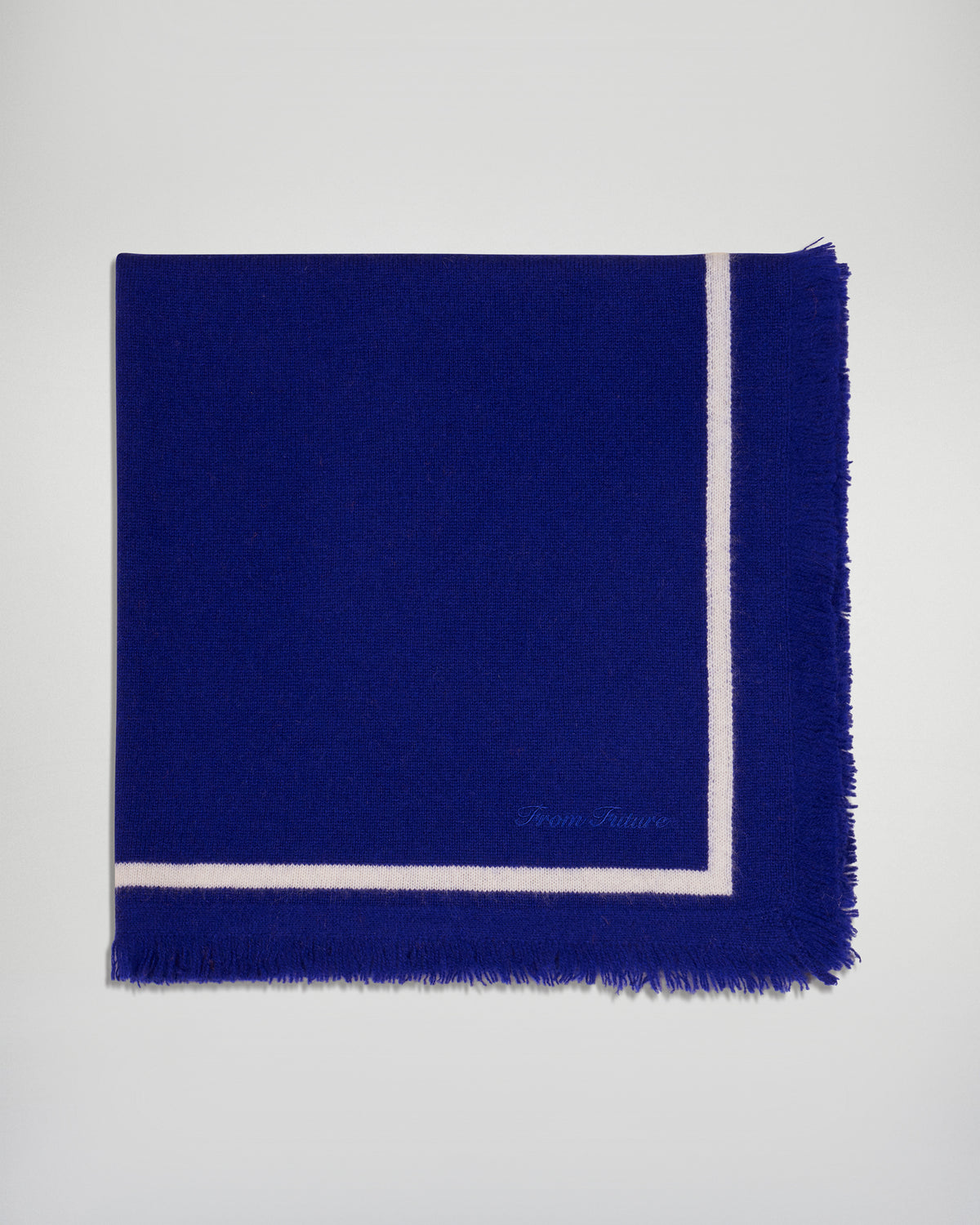 The must-have accessory for winter is here. Perfect for enhancing your look, our 100% cashmere scarf combines elegance and comfort. Crafted in a 2-ply knit for unparalleled softness, its FROM FUTURE embroidery and unique knitting pattern create subtle color variations in navy and ecru, adding a timeless touch of boldness to your style.