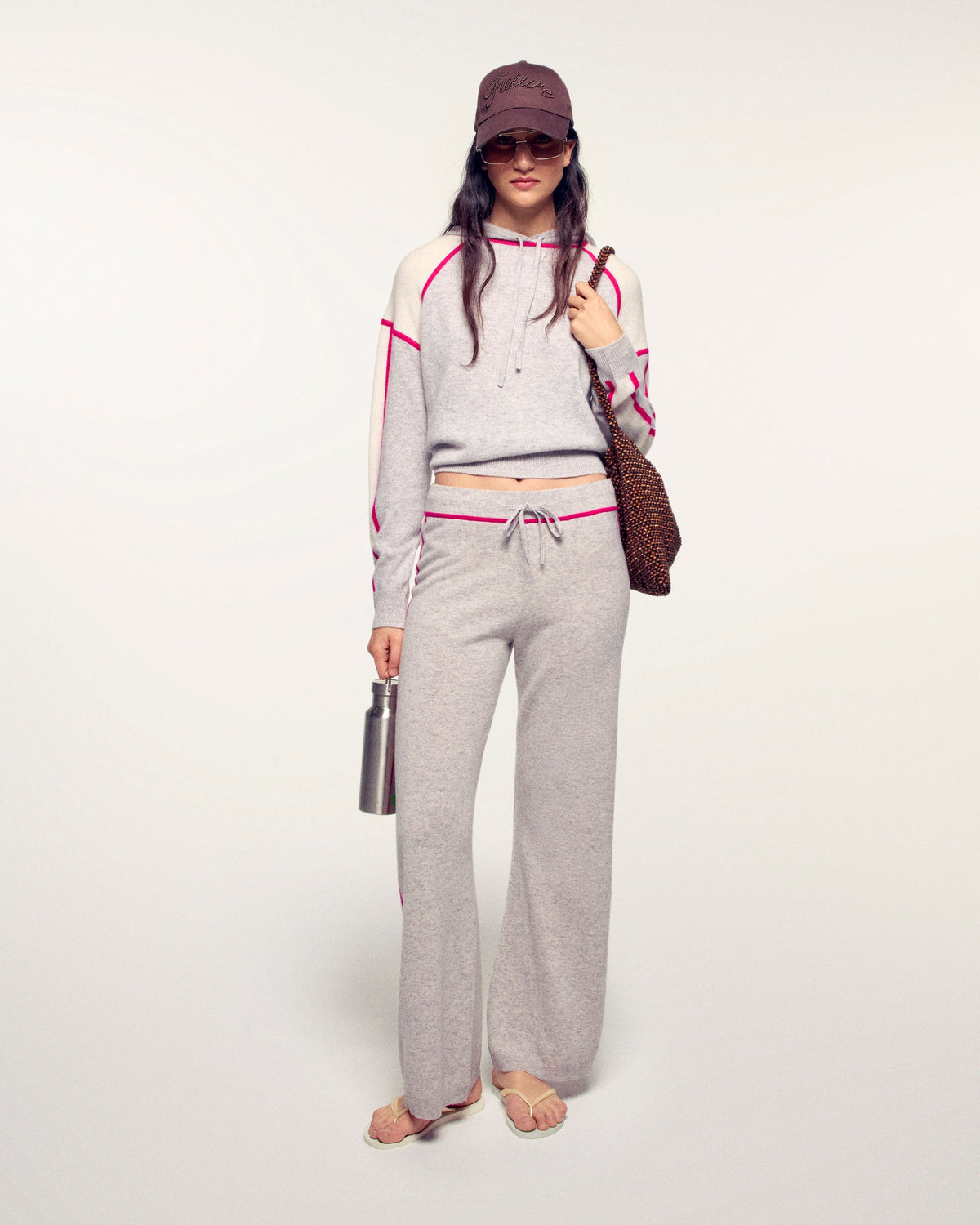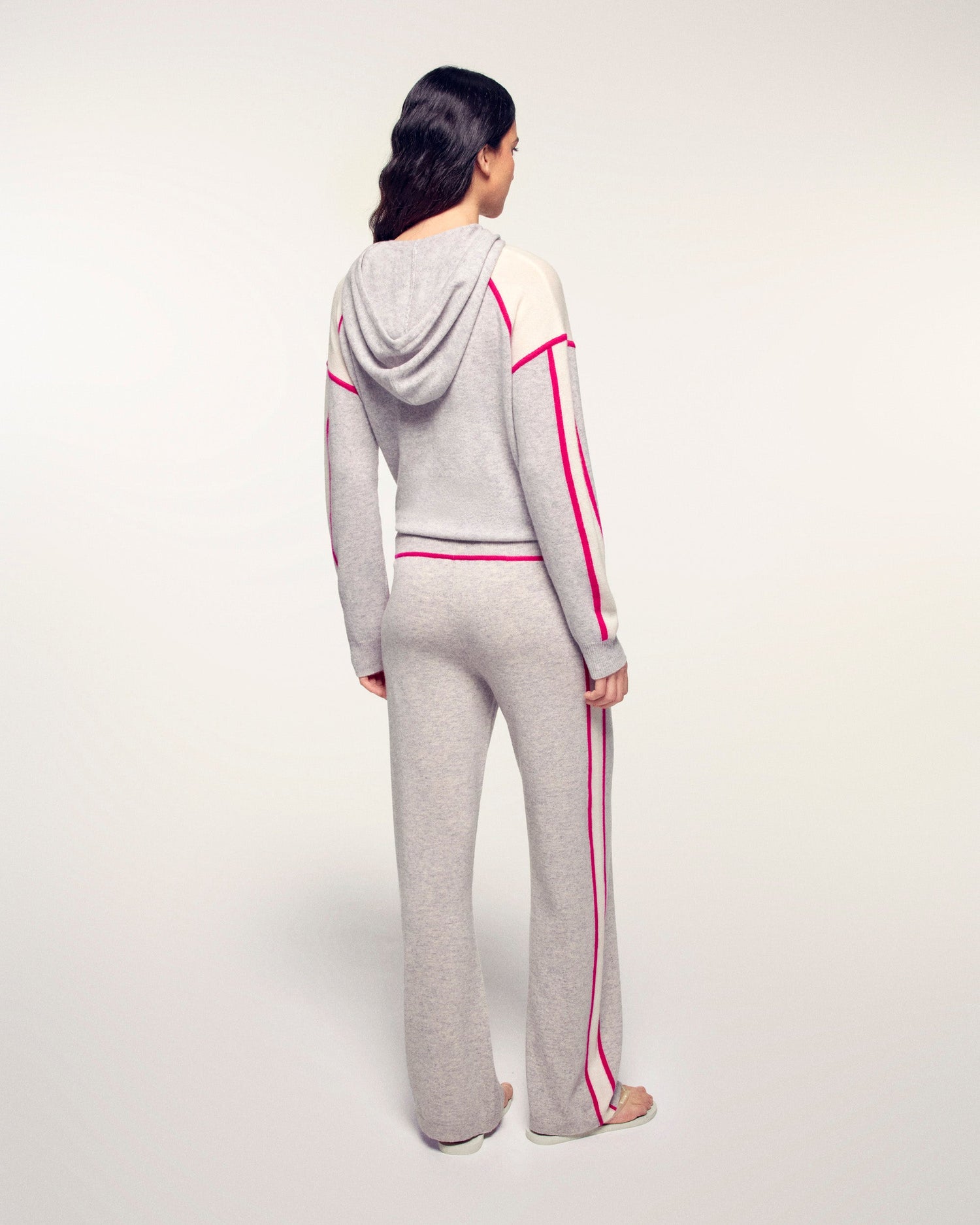 These 2-ply cashmere joggers combine sportswear comfort with the luxury of knitwear. Their regular straight cut and contrasting side stripes elongate the silhouette and give it a graphic and trendy look.