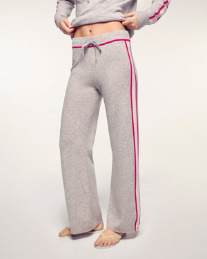 Wide Contrasting Striped Joggers - 100% Cashmere - GCS Verified - Light Heather Gray