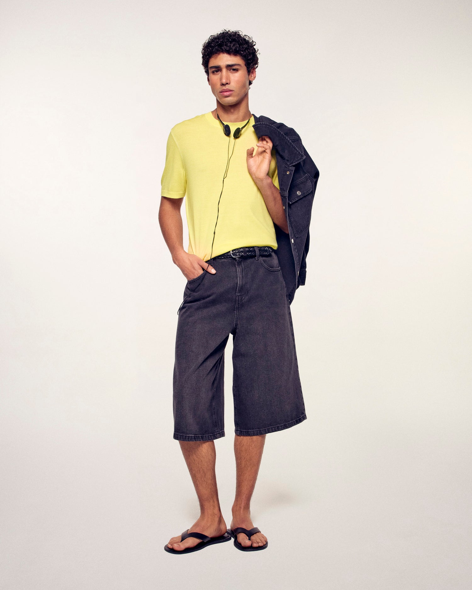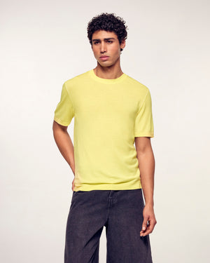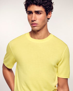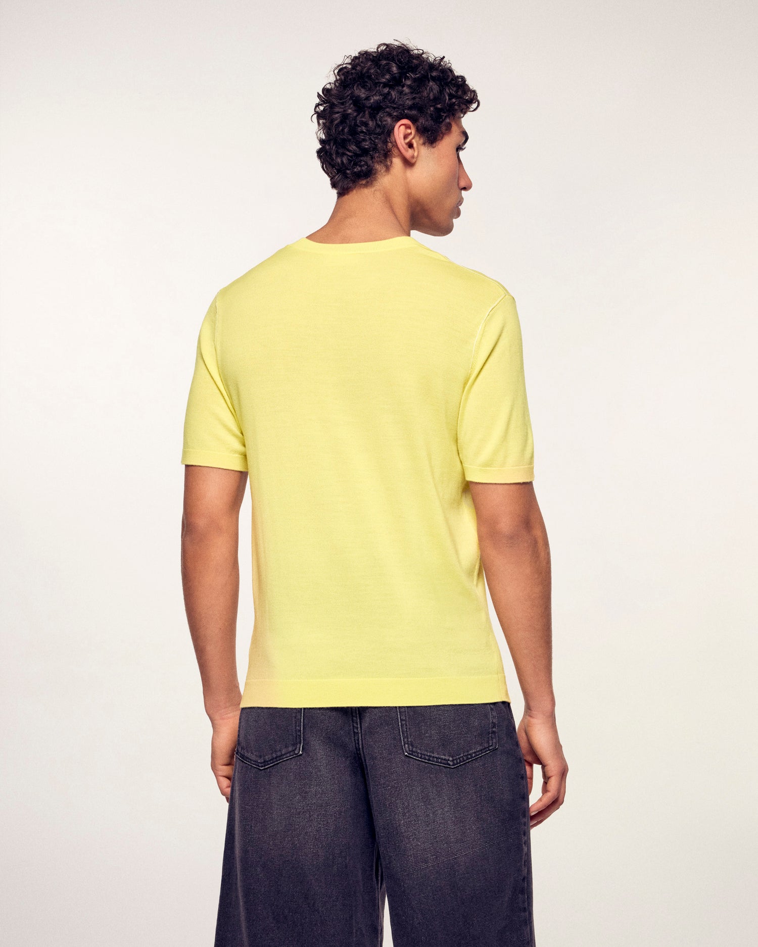 A minimalist and elegant piece made from merino wool for absolute lightness. This short-sleeve sweater stands out with its fine contrasting trims that delicately highlight the silhouette for a modern and refined style.