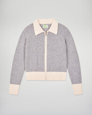 Make a statement with our short cardigan sweater crafted from cashmere. Bold contrasting trims accentuate the shirt neck, zip closure, and cuffs. Pair with your favorite jeans or tailored pants for a chic and casual look.
