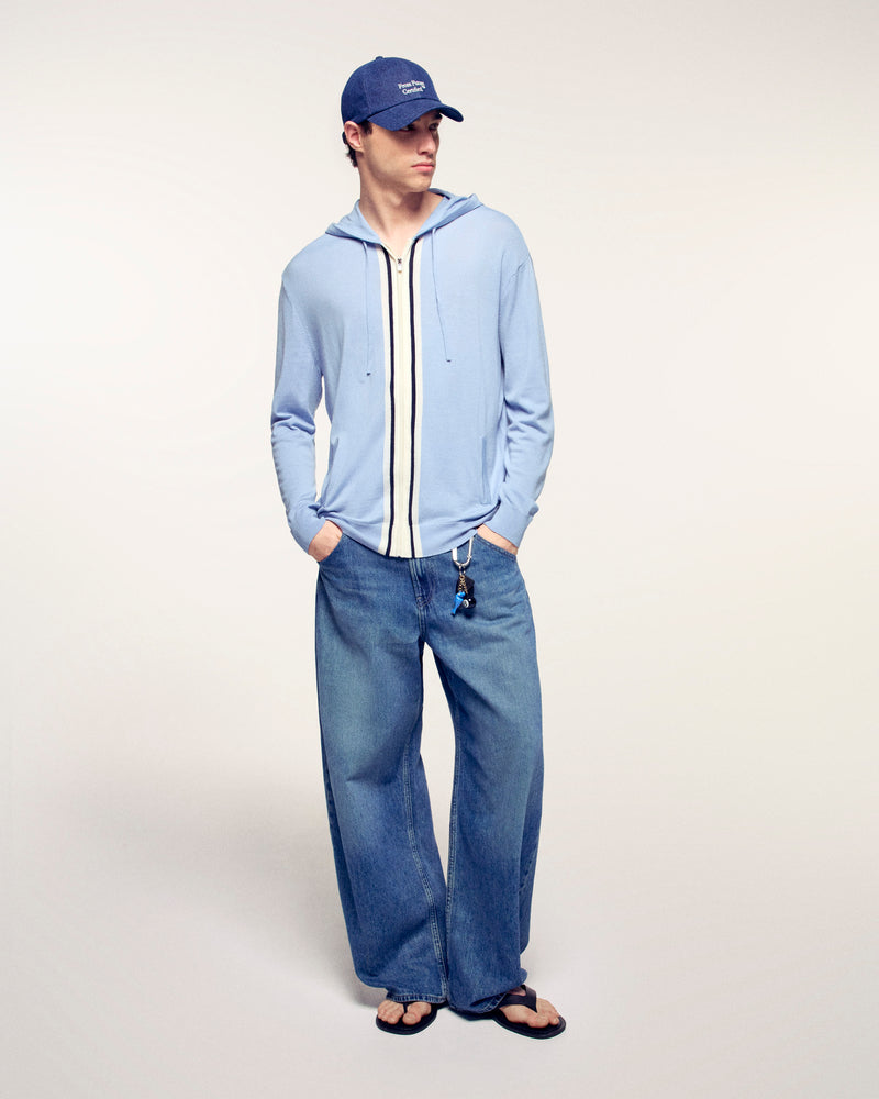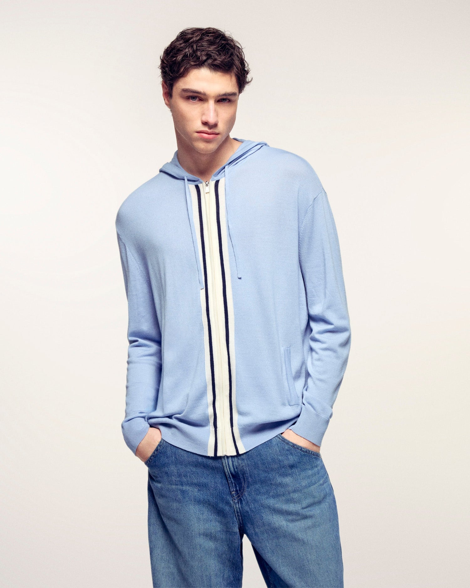 The perfect hoodie for maximum comfort. Crafted in pure Merino Wool, this hooded sweater offers incomparable softness. Its oversize cut and design are structured by a wide contrasting stripe at the zipper.