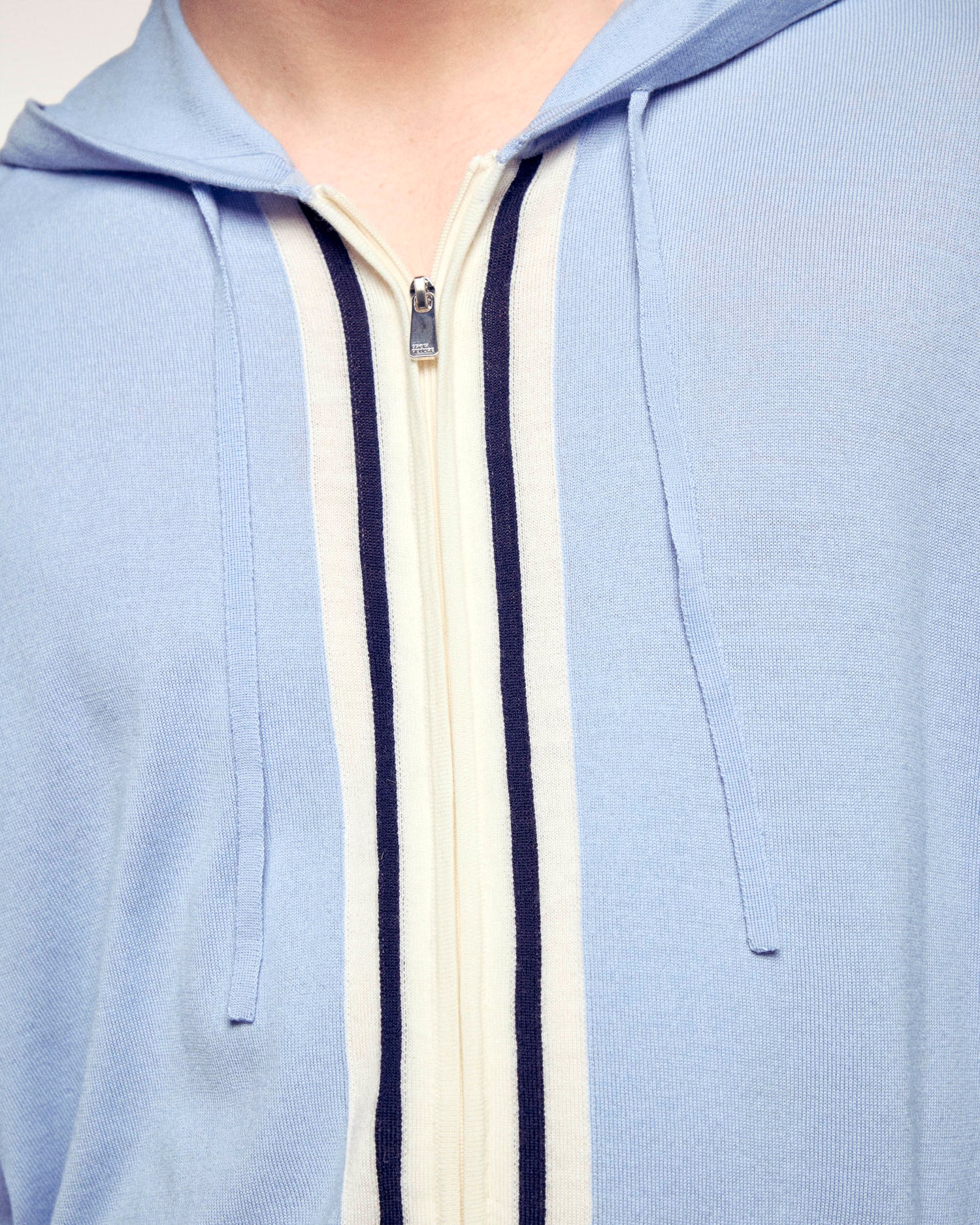 Contrasting Striped Hoodie - 100% Merino Wool - RWS Certified - Infinity Blue
