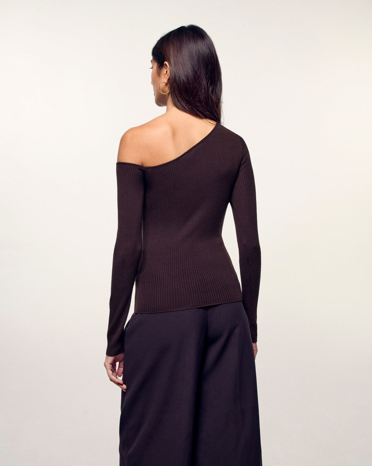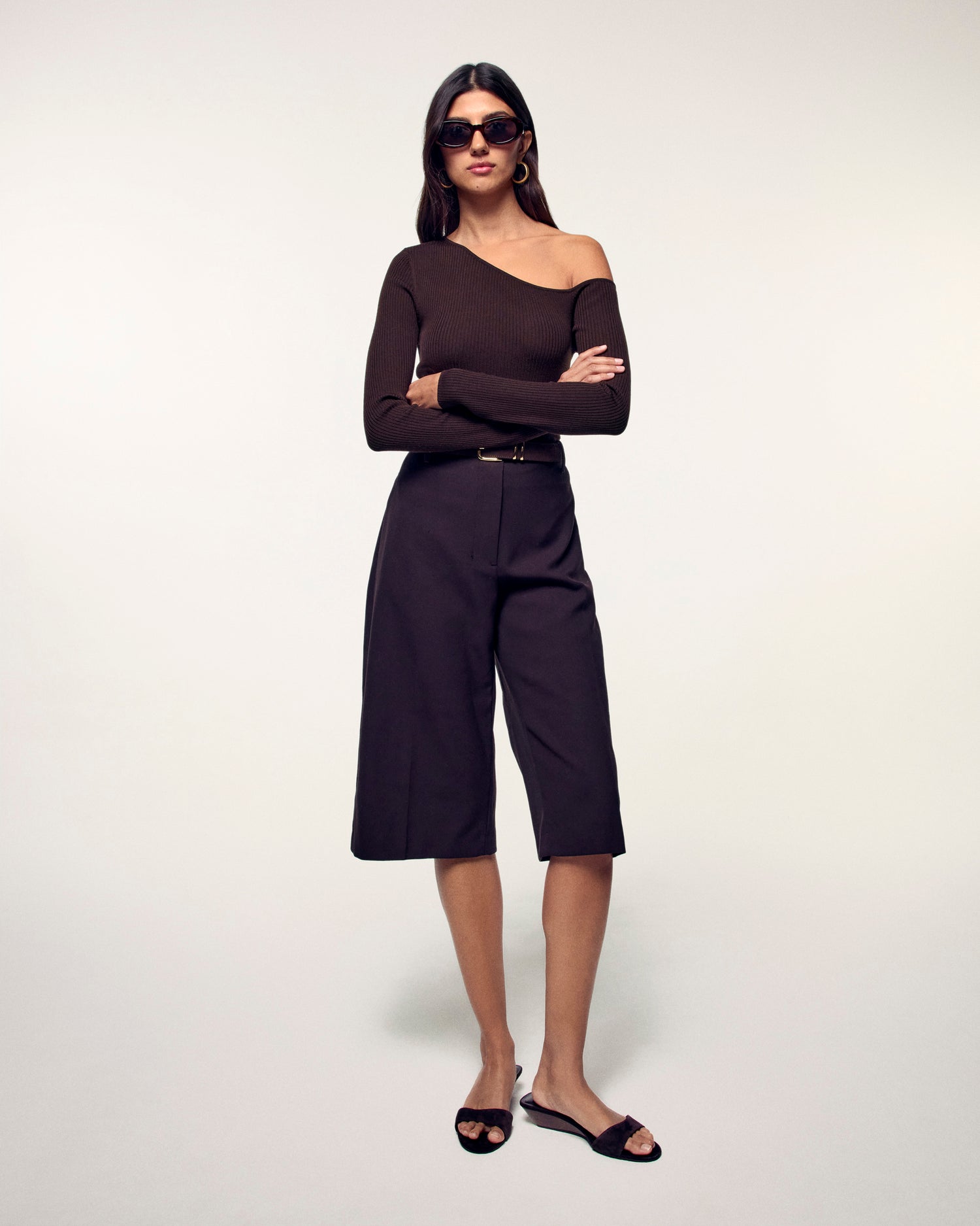 Ideal for day or night, this short top is suitable for all occasions. Crafted from 2-ply merino wool, it reveals a structured look with an asymmetrical collar and long sleeves. Pair it with wide-leg trousers or a fluid skirt for a sophisticated look.