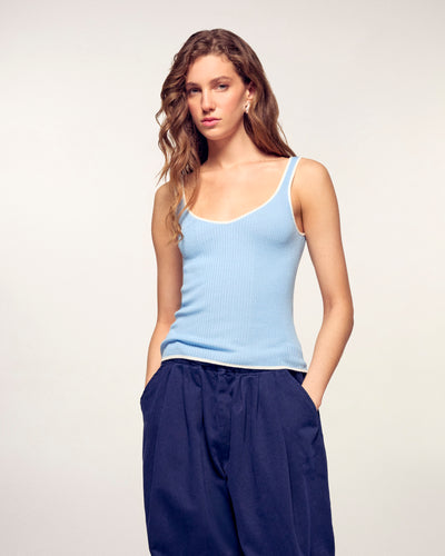 Tank Top with Straps and Contrasting Trim - 100% Merino Wool - RWS Certified - Baby Blue
